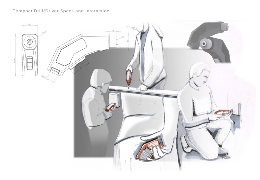After several pages of sketching ideas for various drills and screwdrivers, some of my favorite ideas were consolidated here on this page.